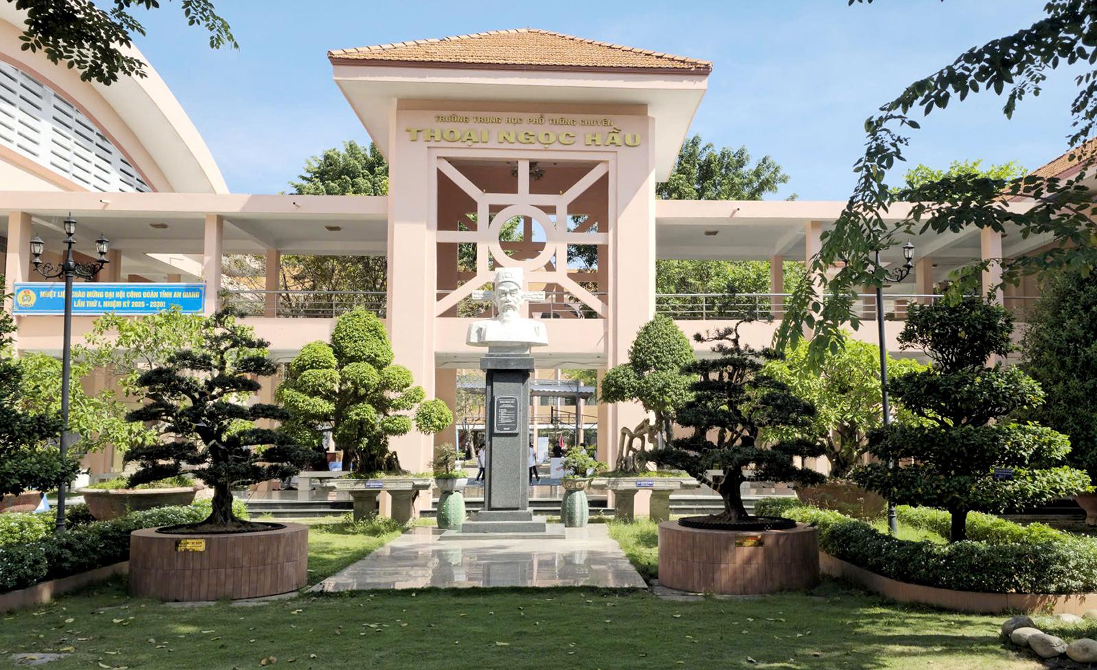 Bức tượng Thoại Ngọc Hầu được xây dựng lại trong khuôn viên Trường Trung học phổ thông chuyên Thoại Ngọc Hầu. Ảnh: NGÔ CHUẨN