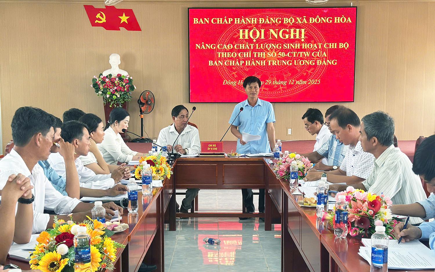 Thực hiện Chỉ thị số 50-CT/TW của Ban Chấp hành Trung ương Đảng, Đảng ủy xã Đông Hòa lựa chọn một chi bộ trên địa bàn làm chi bộ sinh hoạt điểm. Thông qua mô hình này, xã tập trung đổi mới nội dung, phương thức sinh hoạt, phát huy vai trò nêu gương của đảng viên, từng bước nâng cao năng lực lãnh đạo, sức chiến đấu của tổ chức cơ sở đảng, tạo điều kiện để các chi bộ khác học tập, nhân rộng.