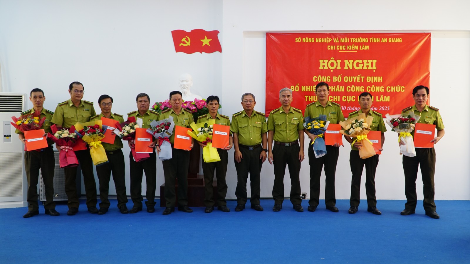 Tại hội nghị, Chi cục trưởng Chi cục Kiểm lâm tỉnh An Giang Trần Thành Được trao các quyết định của UBND tỉnh An Giang về việc thành lập các phòng, đơn vị trực thược và quyết định bổ nhiệm Trưởng, Phó phòng và lãnh đạo các đơn vị trực thuộc, gồm: Phòng Hành chính - Tổng hợp; Phòng Nghiệp vụ Kiểm lâm; Đội Kiểm lâm cơ động và Phòng cháy, chữa cháy rừng; 6 Hạt Kiểm lâm khu vực; Trạm Cứu hộ động vật hoang dã Hòn Me. Đồng thời, công bố các quyết định thành lập đơn vị, phân công nhiệm vụ và địa bàn quản lý cho từng Hạt Kiểm lâm khu vực.