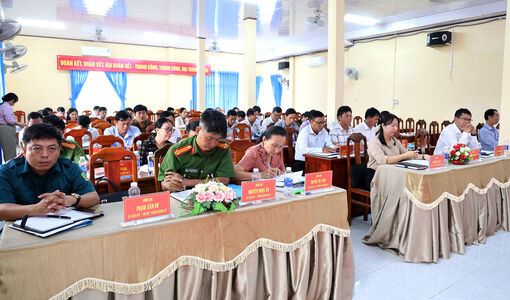 Bí thư Đảng ủy, Chủ tịch HĐND xã Vĩnh Gia Nguyễn Văn Bé Tám; Phó Bí thư Thường trực Đảng ủy xã Vĩnh Gia Trần Thị Thanh Tuyền và Chủ tịch UBND xã Vĩnh Gia Nguyễn Hoàng Vĩnh chủ trì hội nghị.