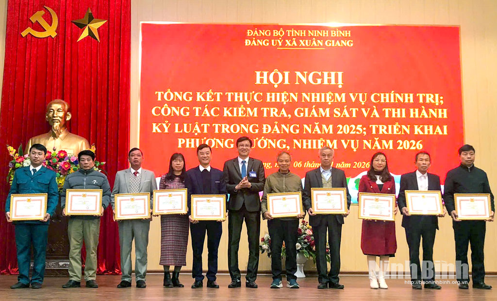 Nhân dịp này, Đảng ủy xã Ninh Cường đã trao tặng Giấy khen cho các tập thể, cá nhân có thành tích xuất sắc trong công tác xây dựng Đảng năm 2025.