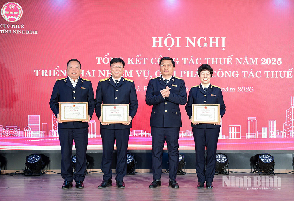 Nhân dịp này, các tập thể, cá nhân hoàn thành xuất sắc nhiệm vụ năm 2025 đã được Cục Thuế và Thuế tỉnh Ninh Bình tặng Giấy khen.