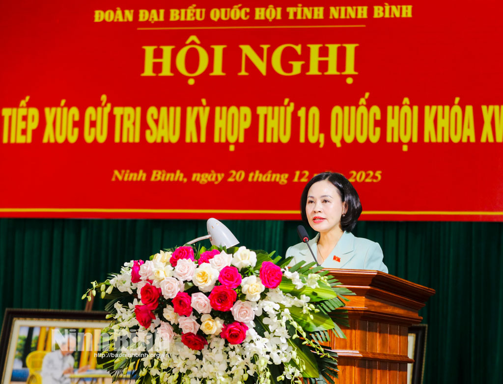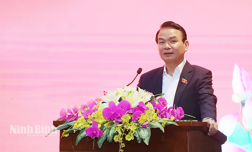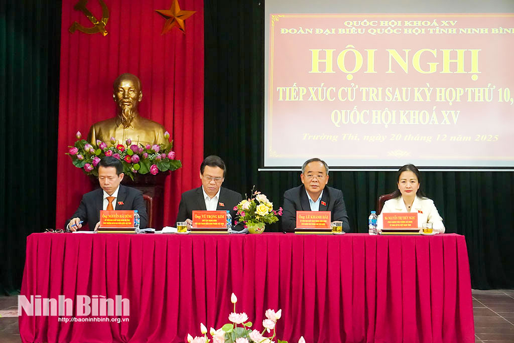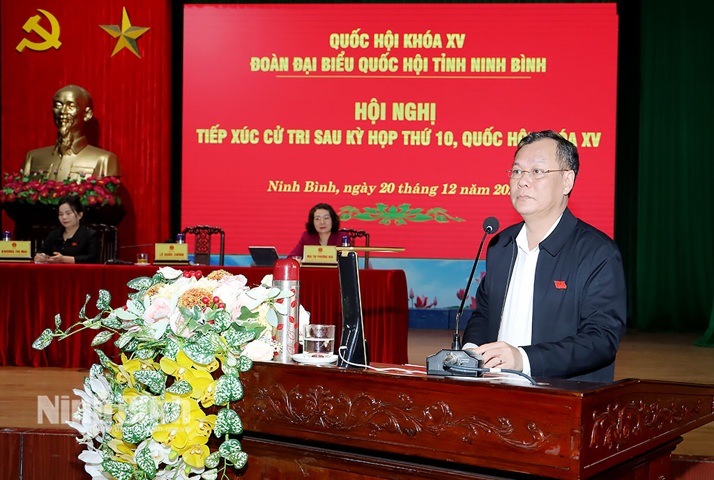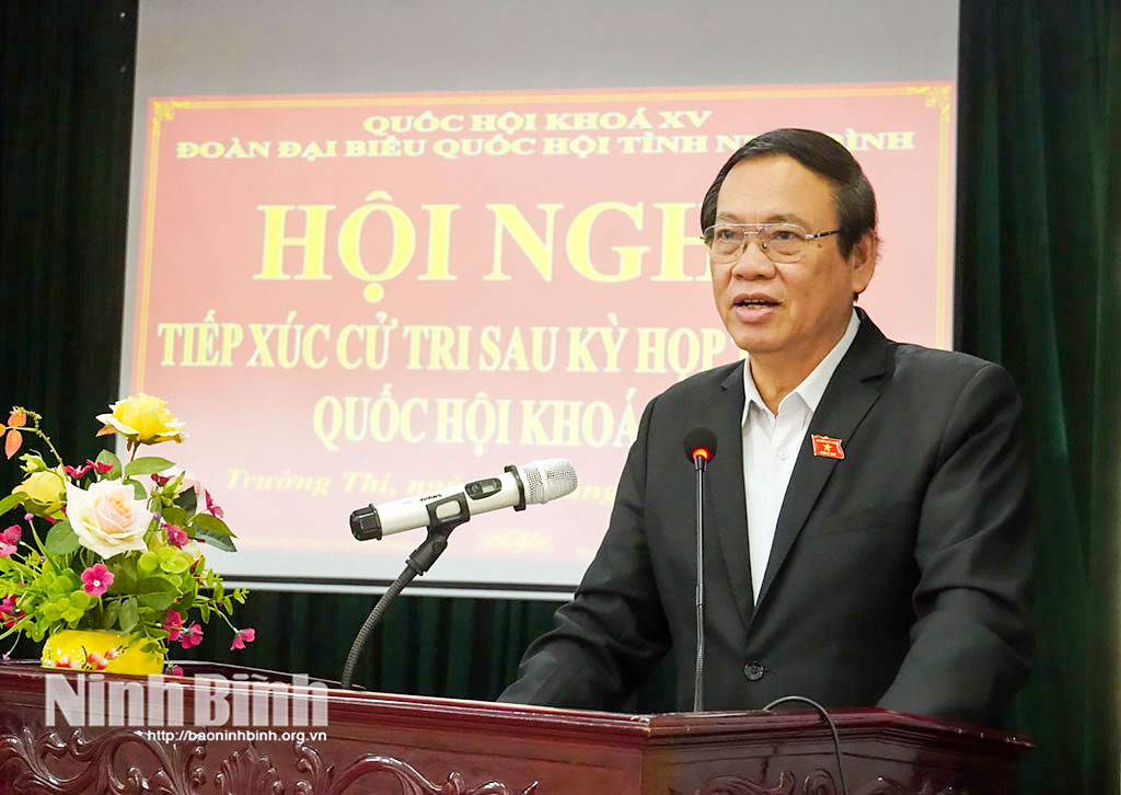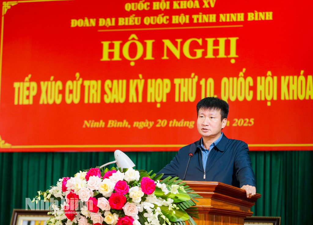 Phát biểu tại buổi tiếp xúc cử tri, đồng chí Trần Huy Tuấn, Phó Bí thư Tỉnh ủy, Chủ tịch UBND tỉnh đã thông tin khái quát tình hình phát triển kinh tế - xã hội của tỉnh năm 2025 và nhiệm vụ trọng tâm năm 2026. Trong đó, nhấn mạnh một số định hướng và nhiệm vụ trọng tâm năm 2026, đồng chí Chủ tịch UBND tỉnh cho biết, tỉnh sẽ tập trung triển khai thực hiện Nghị quyết Đại hội Đảng các cấp; chuẩn bị tốt các điều kiện và tổ chức thành công cuộc bầu cử đại biểu Quốc hội và đại biểu Hội đồng nhân dân các cấp nhiệm kỳ 2026-2031. Quán triệt và thực hiện nghiêm các nghị quyết của Đảng, Quốc hội, nhất là Nghị quyết Đại hội Đảng toàn quốc lần thứ XIV; Nghị quyết chuyên đề của Ban Chấp hành Đảng bộ tỉnh, gắn với việc tổ chức triển khai thực hiện Quy hoạch tỉnh Ninh Bình thời kỳ 2021-2030, tầm nhìn đến năm 2050. Có các giải pháp đột phá hoàn thành cao nhất các mục tiêu đề ra để phấn đấu đến năm 2030 Ninh Bình trở thành thành phố Trực thuộc Trung ương. Kiên định mục tiêu tăng trưởng 11%. Bên cạnh đó, triển khai các dự án động lực, các công trình giao thông mang tính kết nối để tạo dự địa và động lực cho tăng trưởng như: Tuyến đường trục phát triển kết nối Hoa Lư - Nam Định, Tuyến đường kết nối Thanh Liêm - Cao Bồ (T4 kéo dài), Tuyến đường Hoa Lư kết nối với trục dọc 07, Dự án đường sắt tốc độ cao trên trục Bắc - Nam...