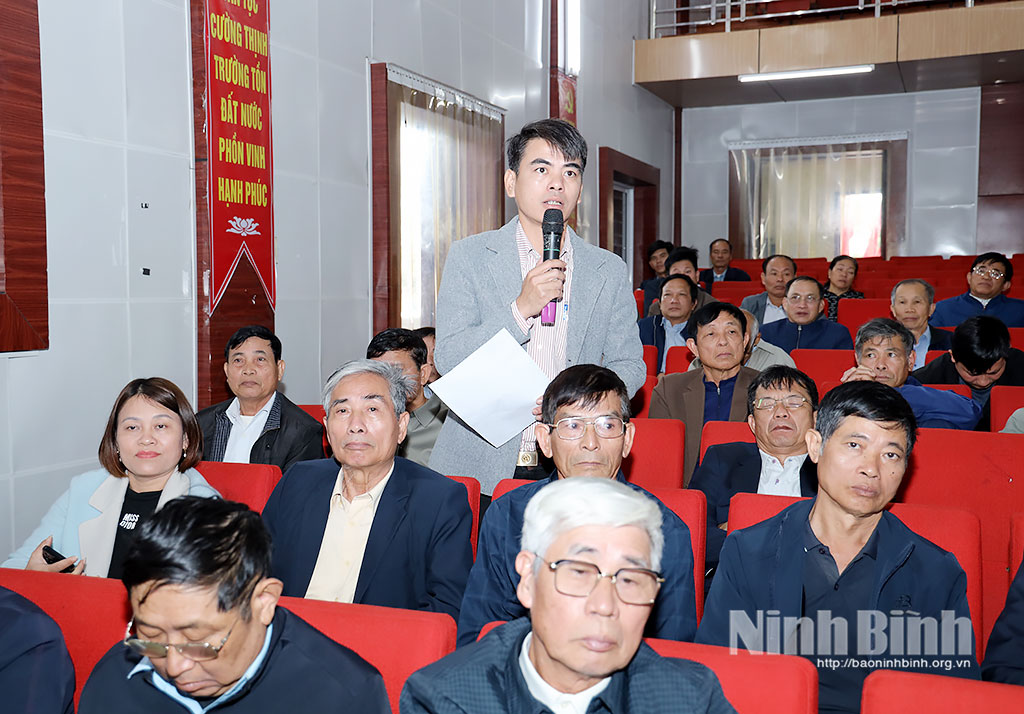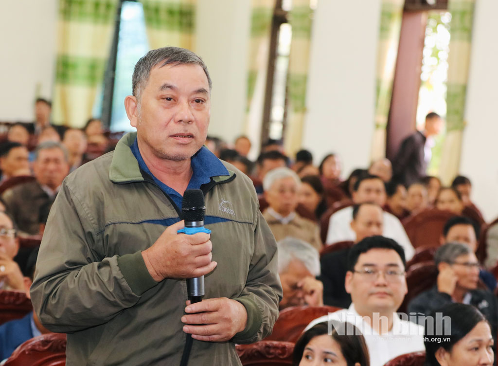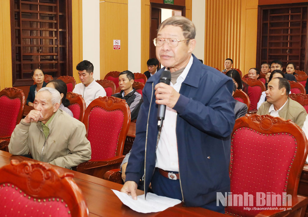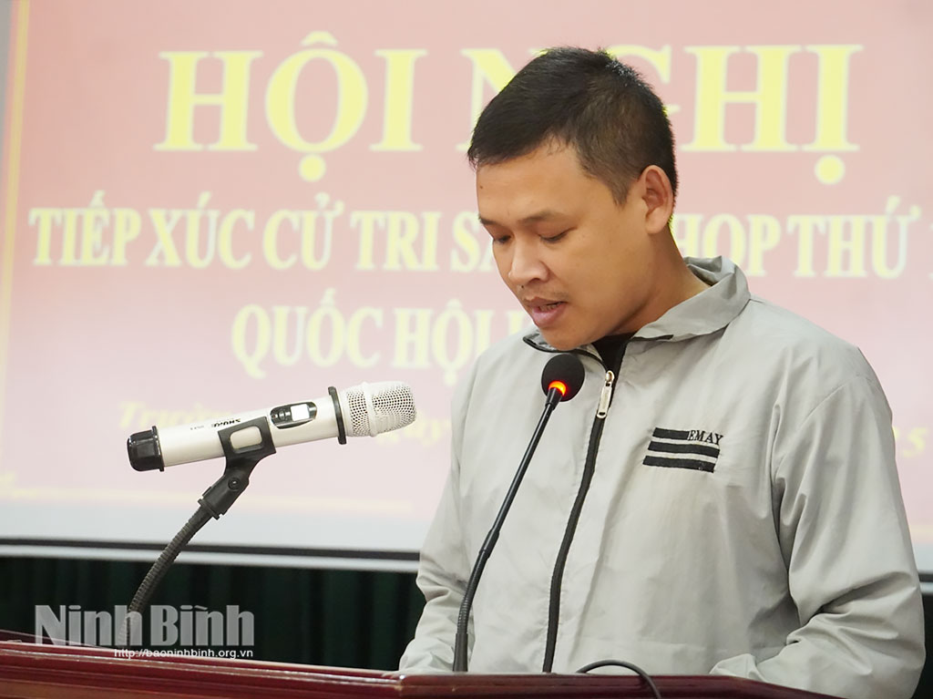 Tại buổi tiếp xúc, sau khi nghe đại diện Đoàn đại biểu Quốc hội tỉnh thông tin kết quả Kỳ họp thứ 10, Quốc hội khóa XV, cử tri đã phát biểu ý kiến, bày tỏ tâm tư, nguyện vọng, đồng thời đề xuất, kiến nghị nhiều vấn đề mà nhân dân quan tâm. Trong đó, cử tri đề nghị các cấp có thẩm quyền quan tâm, xem xét, sớm đẩy nhanh tiến độ thi công các dự án: xây dựng cầu qua sông Hoàng Long; cải tạo, mở rộng sông Na, sông Lạng; xử lý sạt lở đê chống lũ tiểu mãn tại khu vực 3 thôn của làng Kênh Gà, xã Gia Viễn; đầu tư xây dựng cơ sở hạ tầng thủy sản vùng trũng gắn với nông nghiệp đa giá trị, phát triển du lịch.