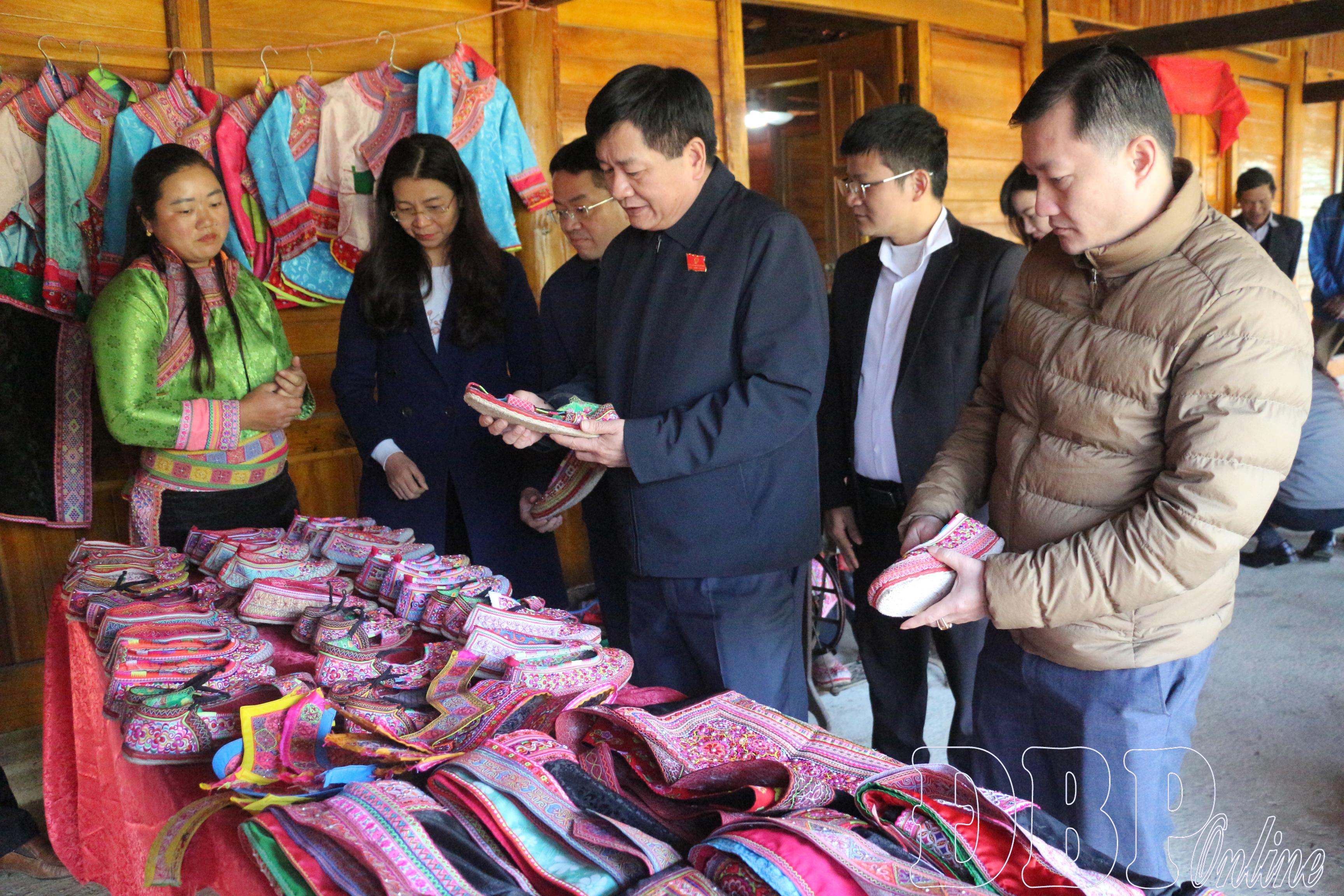 Trước đó, Tổ công tác số 1 của Đoàn giám sát chuyên đề HĐND tỉnh đã giám sát thực tế Nghề truyền thống làm giày thêu của người Hoa tại bản Thèn Pả.