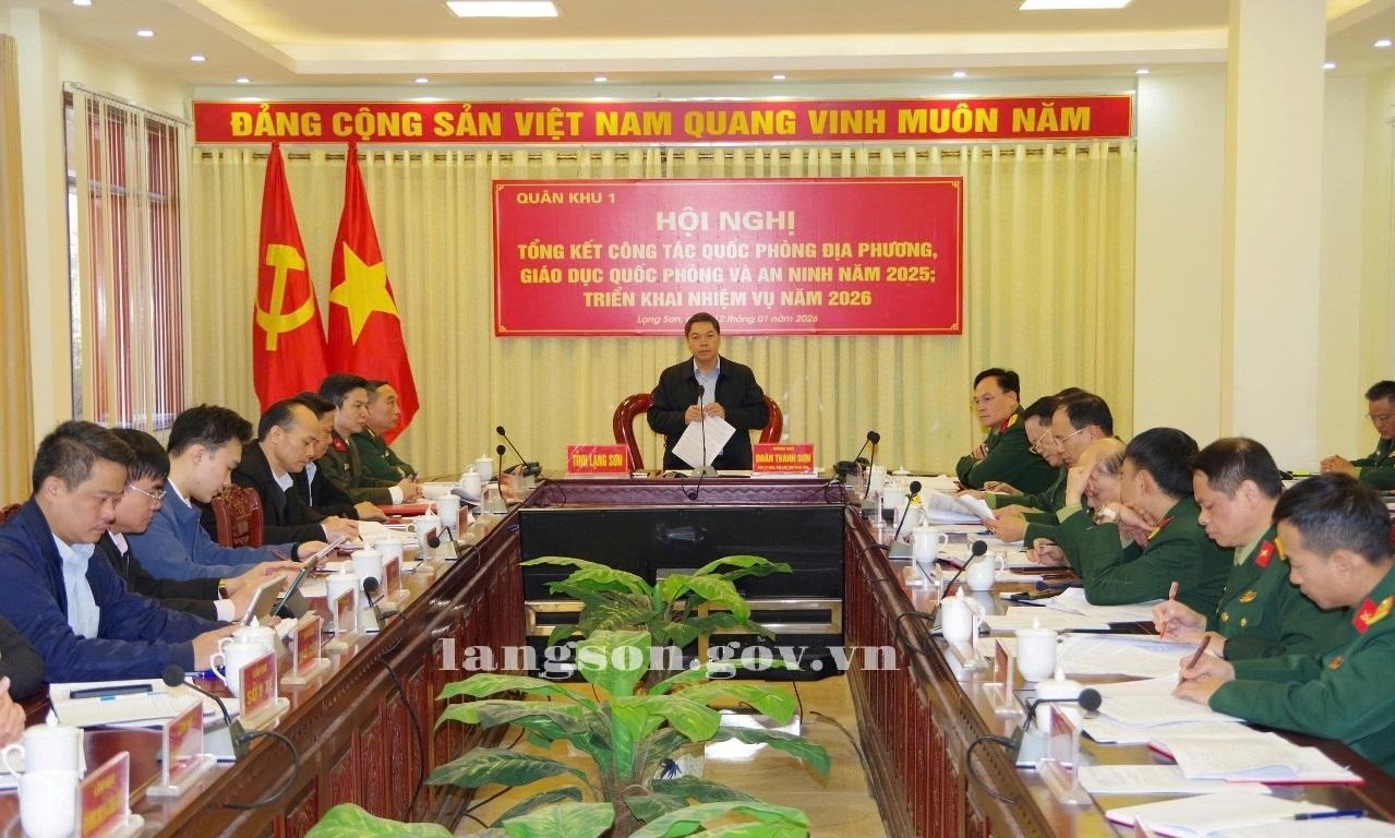 Chiều 12/01/2026, Quân khu 1 tổ chức Hội nghị trực tuyến tổng kết công tác quốc phòng địa phương, giáo dục quốc phòng và an ninh năm 2025, triển khai nhiệm vụ năm 2026. Trung tướng Trương Mạnh Dũng, Tư lệnh Quân khu 1 chủ trì hội nghị. Dự hội nghị tại điểm cầu Bộ Chỉ huy quân sự (CHQS) tỉnh Lạng Sơn có đồng chí Đoàn Thanh Sơn, Phó Chủ tịch UBND tỉnh; Chỉ huy trưởng Bộ CHQS tỉnh, lãnh đạo một số sở, ban, ngành.