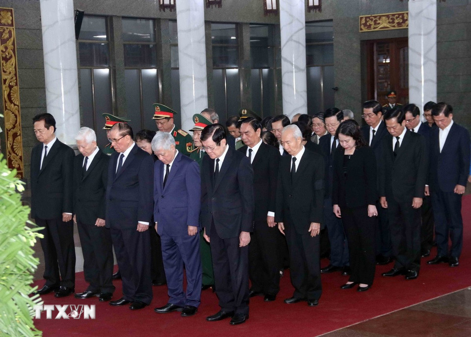 Tham gia đoàn viếng có nguyên Tổng Bí thư Nông Đức Mạnh; các đồng chí nguyên Ủy viên Bộ Chính trị, nguyên Chủ tịch nước Nguyễn Minh Triết và Trương Tấn Sang; đồng chí Nguyễn Tấn Dũng, nguyên Ủy viên Bộ Chính trị, nguyên Thủ tướng Chính phủ; các đồng chí nguyên Ủy viên Bộ Chính trị,  nguyên Chủ tịch Quốc hội Nguyễn Sinh Hùng, Nguyễn Thị Kim Ngân; đồng chí Nguyễn Thiện Nhân, nguyên Ủy viên Bộ Chính trị, nguyên Bí thư Thành ủy Thành phố Hồ Chí Minh; Đại tướng Ngô Xuân Lịch, nguyên Ủy viên Bộ Chính trị, nguyên Bộ trưởng Bộ Quốc phòng; Đại tướng Nguyễn Trọng Nghĩa, Ủy viên Bộ Chính trị, Bí thư Trung ương Đảng, Ủy viên Thường vụ Quân ủy Trung ương, Chủ nhiệm Tổng cục Chính trị QĐND Việt Nam.
