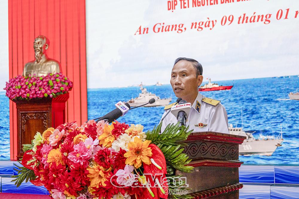 Chuẩn Đô đốc Ngô Văn Thành, Bí thư Đảng uỷ, Chính uỷ Vùng 5 Hải quân, Trưởng đoàn công tác, phát biểu tại buổi gặp mặt.