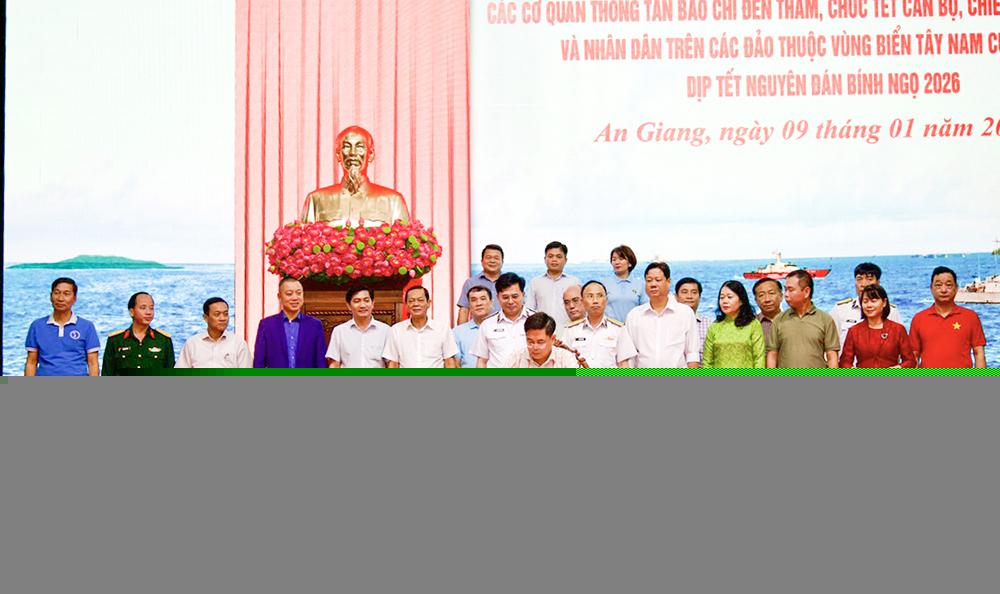Chiều 9/1, tại đặc khu Phú Quốc, tỉnh An Giang, Bộ Tư lệnh Vùng 5 Hải quân tổ chức chương trình gặp mặt, triển khai các đoàn công tác đi thăm, động viên, chúc Tết cán bộ, chiến sĩ, Nhân dân và các lực lượng đang thực hiện nhiệm vụ trên vùng biển, đảo Tây Nam, nhân dịp Tết Nguyên đán Bính Ngọ 2026.
