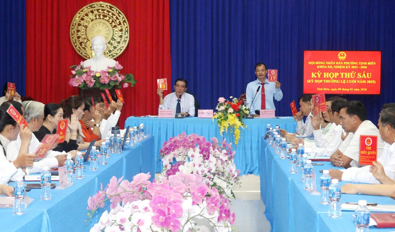 Tại kỳ họp, đại biểu HĐND phường Tịnh Biên đã thông qua báo cáo kết quả thực hiện nhiệm vụ phát triển kinh tế - xã hội năm 2025, phương hướng, nhiệm vụ năm 2026.