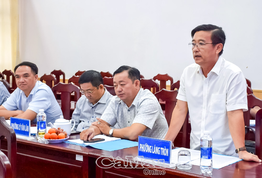 Tại buổi làm việc, đồng chí Huỳnh Công Quân, Giám đốc sở Tài chính, báo cáo kết quả rà soát hiện trạng và phương án sắp xếp, xử lý tài sản công là nhà, đất dôi dư trên địa bàn TP Cà Mau (cũ), gồm các phường Lý Văn Lâm, An Xuyên, Hoà Thành, Tân Thành và thị xã Giá Rai (cũ), gồm phường Giá Rai, phường Láng Tròn và xã Phong Thạnh.
