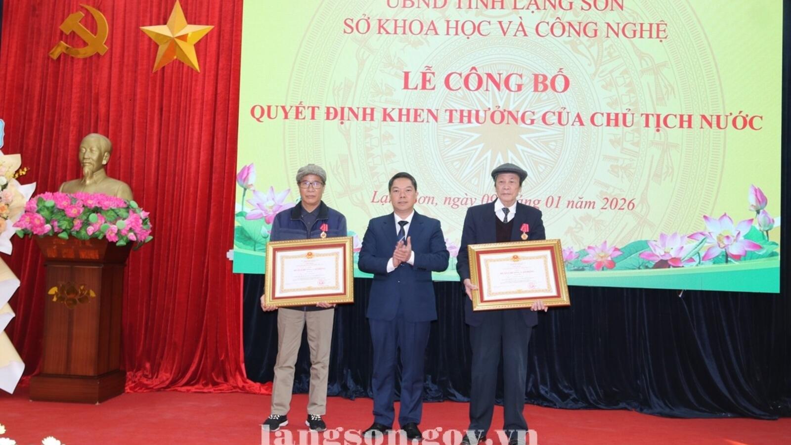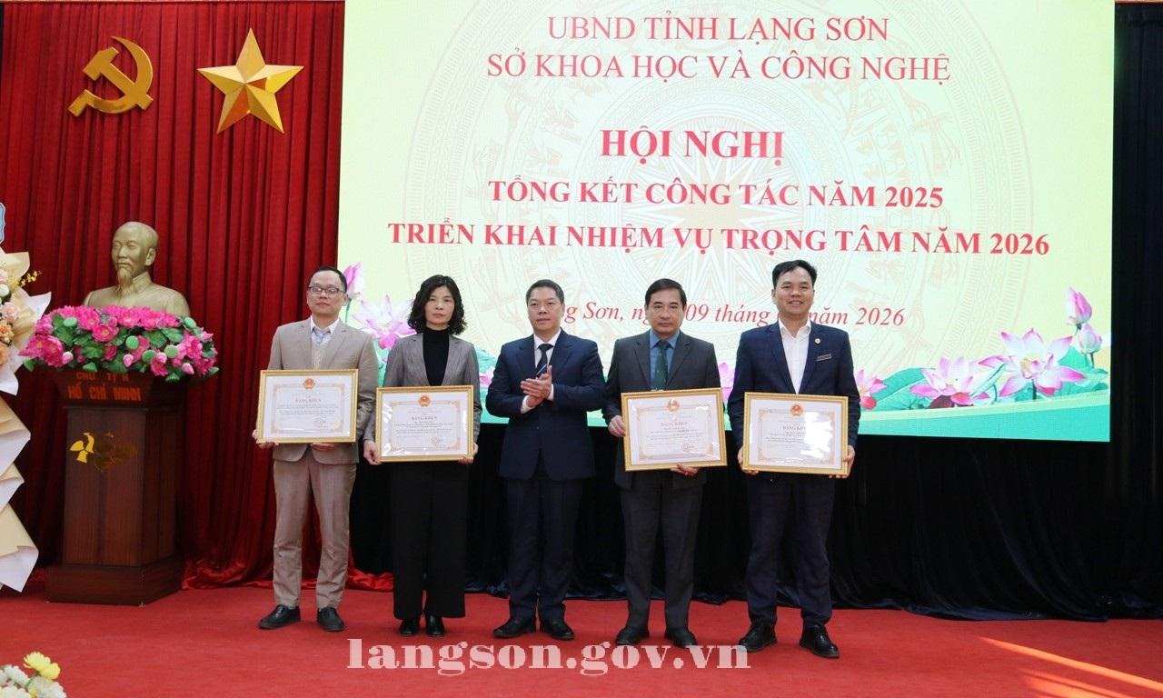 Nhân dịp này, 02 đồng chí nguyên lãnh đạo Sở KH&CN được tặng Huân chương Lao động hạng Nhì, hạng Ba của Chủ tịch nước; 01 tập thể, 03 cá nhân được tặng Bằng khen của Chủ tịch UBND tỉnh vì đã có thành tích xuất sắc, tiêu biểu trong công tác hỗ trợ hệ sinh thái khởi nghiệp đổi mới sáng tạo tỉnh Lạng Sơn giai đoạn 2021 – 2025. Đồng thời, Giám đốc Sở KH&CN cũng tặng Giấy khen cho nhiều cá nhân vì có thành tích trong phong trào thi đua thực hiện nhiệm vụ năm 2025.