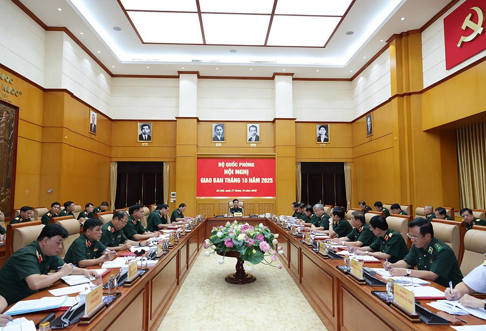 Tháng 10/2025, Thường vụ Quân ủy Trung ương, Lãnh đạo Bộ Quốc phòng đã lãnh đạo, chỉ đạo toàn quân triển khai đồng bộ, quyết liệt, hoàn thành toàn diện các nhiệm vụ. Toàn quân duy trì nghiêm chế độ SSCĐ, quản lý chặt chẽ vùng trời, vùng biển, biên giới, nội địa; bảo đảm thông tin liên lạc, cơ yếu, an ninh mạng đáp ứng yêu cầu nhiệm vụ, không để bị động, bất ngờ, bảo vệ vững chắc chủ quyền lãnh thổ, phối hợp giữ vững an ninh, trật tự trên địa bàn cả nước.