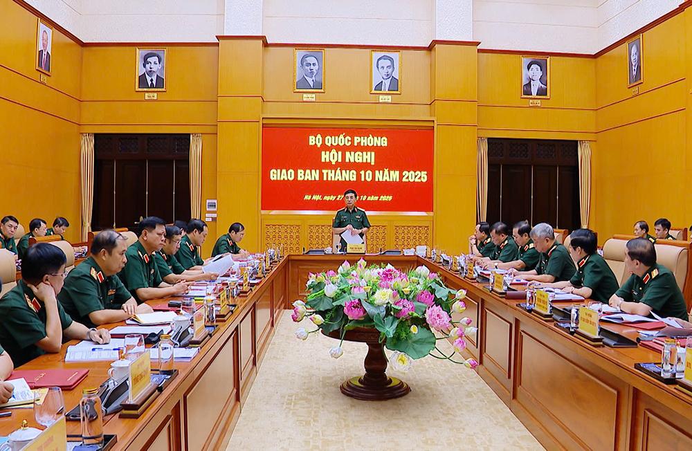 (Bqp.vn) - Sáng 27/10, tại Hà Nội, Bộ Quốc phòng tổ chức Hội nghị Giao ban tháng 10 năm 2025. Đại tướng Phan Văn Giang, Ủy viên Bộ Chính trị, Phó Bí thư Quân ủy Trung ương, Bộ trưởng Bộ Quốc phòng chủ trì hội nghị.