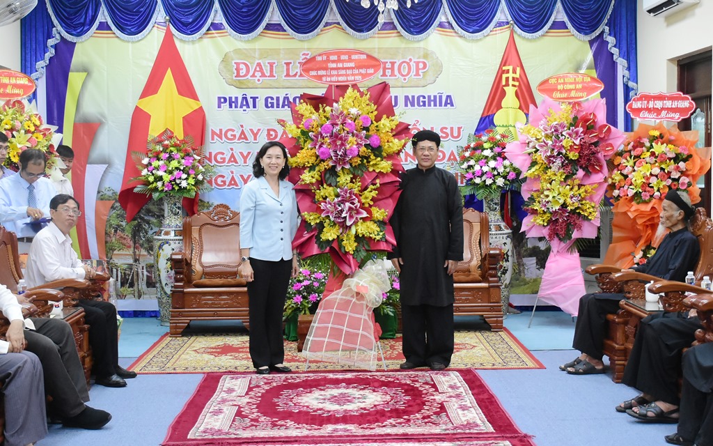 Phó Chủ tịch UBND tỉnh An Giang Nguyễn Thị Minh Thúy chúc mừng Đại lễ Tam hợp Phật giáo Tứ Ân Hiếu Nghĩa năm 2025