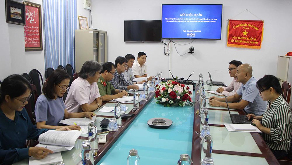 Chiều cùng ngày, Cục Phòng bệnh, Vụ Hợp tác quốc tế (Bộ Y tế) và Tổ chức Di cư Quốc tế (IOM) thảo luận cùng Trung tâm Kiểm soát bệnh tật An Giang (CDC) về cơ chế phối hợp triển khai dự án tại cửa khẩu và khu vực biên giới trong tỉnh; đề xuất của An Giang về địa bàn biên giới tham gia dự án; CDC cử đầu mối phụ trách hoạt động của dự án.