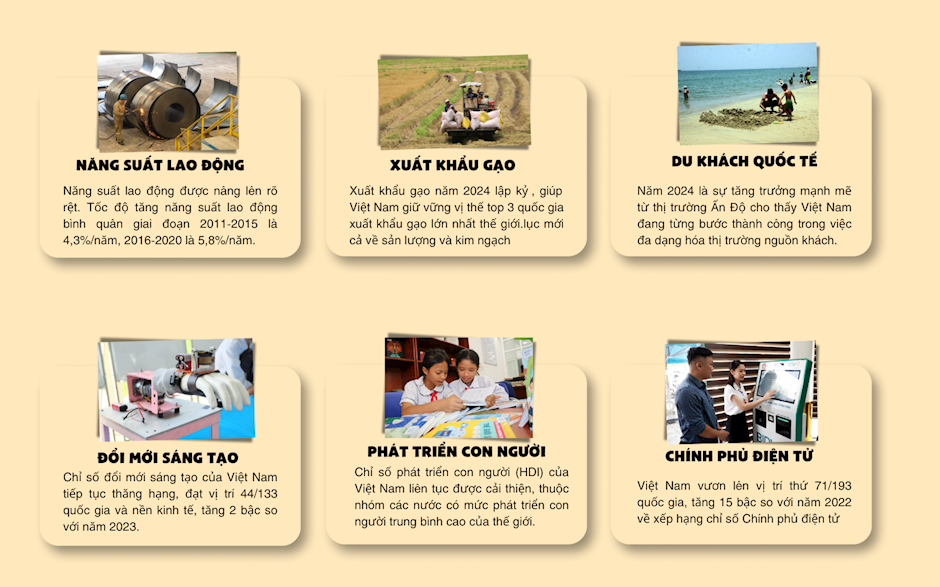 Những thành tựu của công cuộc đổi mới kể trên là kết quả của quá trình phấn đấu liên tục, bền bỉ của toàn Đảng, toàn dân và toàn quân ta qua nhiều nhiệm kỳ đại hội, dưới sự lãnh đạo, chỉ đạo đúng đắn, có hiệu quả, kịp thời của Ban Chấp hành Trung ương, Bộ Chính trị, Ban Bí thư và các cấp ủy đảng. Đây chính là tiền đề quan trọng, tạo ra tiềm lực, sức mạnh, niềm tin vào sự phát triển nhanh và bền vững của đất nước trong tương lai.