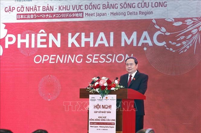 Chủ tịch Quốc hội Trần Thanh Mẫn phát biểu. Ảnh: TTXVNChiều 8/8, tại thành phố Cần Thơ, Chủ tịch Quốc hội Trần Thanh Mẫn dự và phát biểu tại Hội nghị xúc tiến đầu tư "Gặp gỡ Nhật Bản - Khu vực Đồng bằng sông Cửu Long".