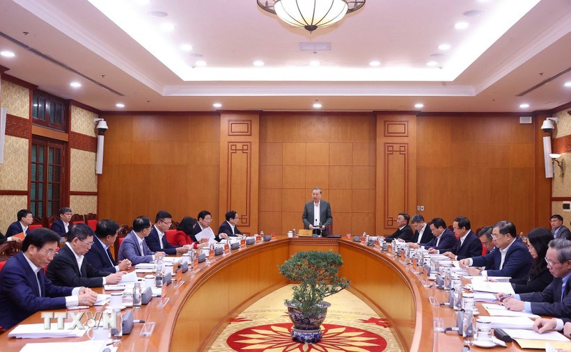 Tổng Bí thư Tô Lâm chủ trì buổi làm việc với Thường trực các Tiểu ban Đại hội XIV của Đảng. (Ảnh: TTXVN)