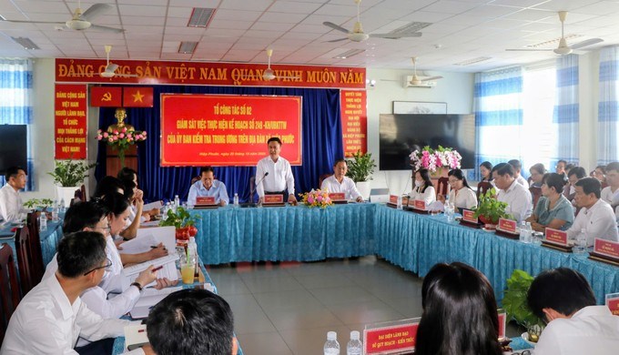 Quang cảnh buổi làm việcChiều 20/10, Tổ công tác số 2 do đồng chí Đặng Minh Thông, Phó Bí thư Thành ủy TPHCM, làm tổ trưởng đã có buổi giám sát kết quả thực hiện Kế hoạch số 249-KH/UBKTTW của Ủy ban Kiểm tra Trung ương tại xã Hiệp Phước, TPHCM.