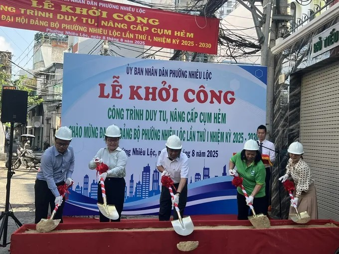 Khởi công nâng cấp 7 tuyến hẻm trên địa bàn phường Nhiêu Lộc. (Ảnh: SGGP)Sáng 8/8, phường Nhiêu Lộc (TPHCM) đã khởi công trình duy tu, sửa chữa, nâng cấp 7 tuyến hẻm trên địa bàn phường. Tham dự buổi lễ có các đồng chí: Võ Văn Đức, Bí thư Đảng ủy, Chủ tịch HĐND phường Nhiêu Lộc; Ngô Thị Hiền, Phó Bí thư Đảng ủy, Chủ tịch UBND phường Nhiêu Lộc cùng đông đảo người dân địa phương.