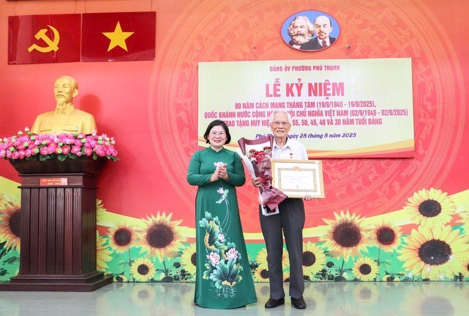 23 đảng viên phường Phú Thạnh nhận Huy hiệu Đảng đợt 2/9