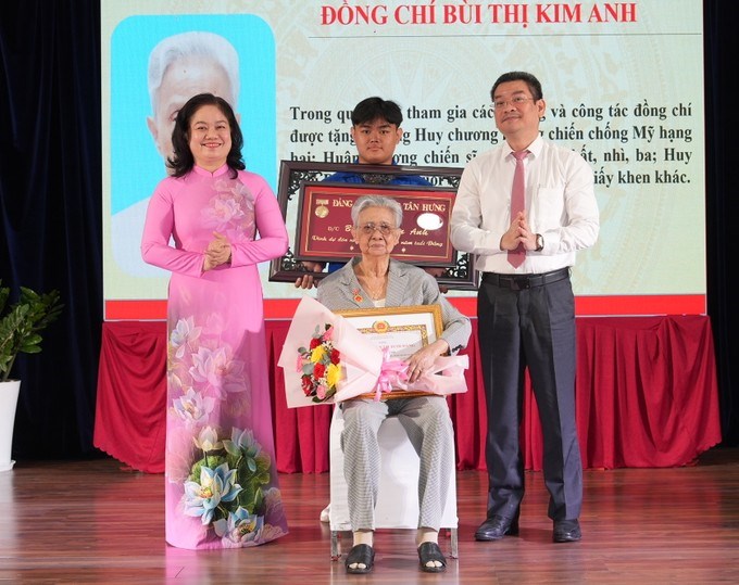 Trưởng Ban Nội chính Thành ủy TPHCM Nguyễn Thị Mỹ Hằng trao Huy hiệu 60 năm tuổi Đảng đến đồng chí Bùi Thị Kim AnhNgày 28/8, Đảng ủy phường Tân Hưng (TPHCM) tổ chức Lễ kỷ niệm 80 năm Cách mạng Tháng Tám thành công (19/8/1945 – 19/8/2025), Quốc khánh nước Cộng hòa xã hội chủ nghĩa Việt Nam (2/9/1945 – 2/9/2025) và trao tặng Huy hiệu Đảng đợt ngày 2/9/2025.