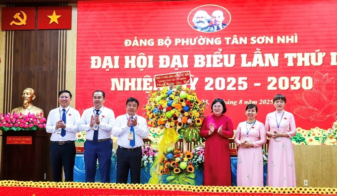 Đồng chí Văn Thị Bạch Tuyết tặng hoa chúc mừng đại hộiSáng 16/8, Đảng bộ phường Tân Sơn Nhì (TPHCM) tổ chức Đại hội đại biểu lần thứ I, nhiệm kỳ 2025-2030.