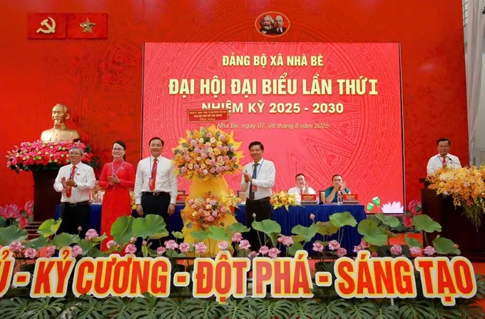 Thành ủy - HĐND - UBND - Ủy ban MTTQ Việt Nam TPHCM chúc mừng đại hộiSáng 8/8, Đảng bộ xã Nhà Bè tổ chức Đại hội đại biểu lần thứ I, nhiệm kỳ 2025-2030. Đồng chí Trần Văn Tuấn, Phó Chủ tịch HĐND TPHCM dự và chỉ đạo đại hội.