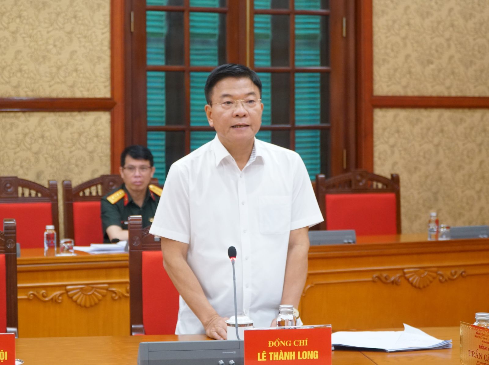 Phó Thủ tướng Chính phủ Lê Thành Long phát biểu tại cuộc làm việc