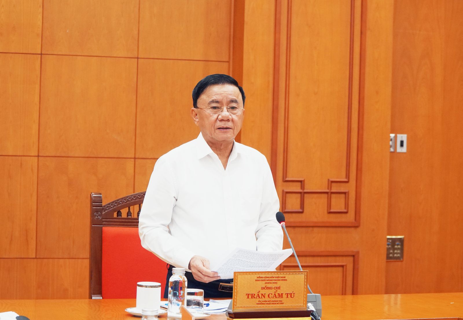 (ĐCSVN) - Sáng 22/10, tại Trụ sở Trung ương Đảng, đồng chí Trần Cẩm Tú, Ủy viên Bộ Chính trị, Thường trực Ban Bí thư chủ trì cuộc họp Ban Chỉ đạo xây dựng Báo cáo kiểm điểm sự lãnh đạo, chỉ đạo của Ban Chấp hành Trung ương khóa XIII trình Đại hội XIV của Đảng và Báo cáo tình hình thực hiện Quy chế làm việc của Ban Chấp hành Trung ương, Bộ Chính trị, Ban Bí thư khóa XIII.