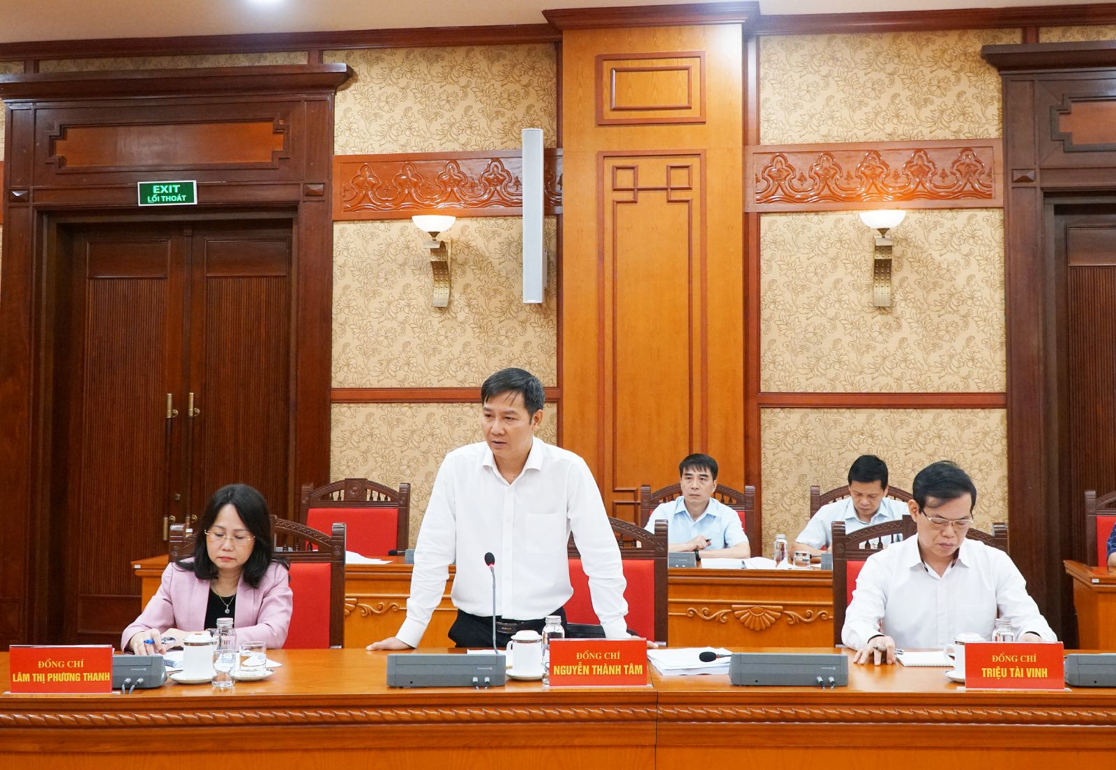 Phó Trưởng Ban Tổ chức Trung ương Nguyễn Thành Tâm phát biểu ý kiến tại cuộc họp.