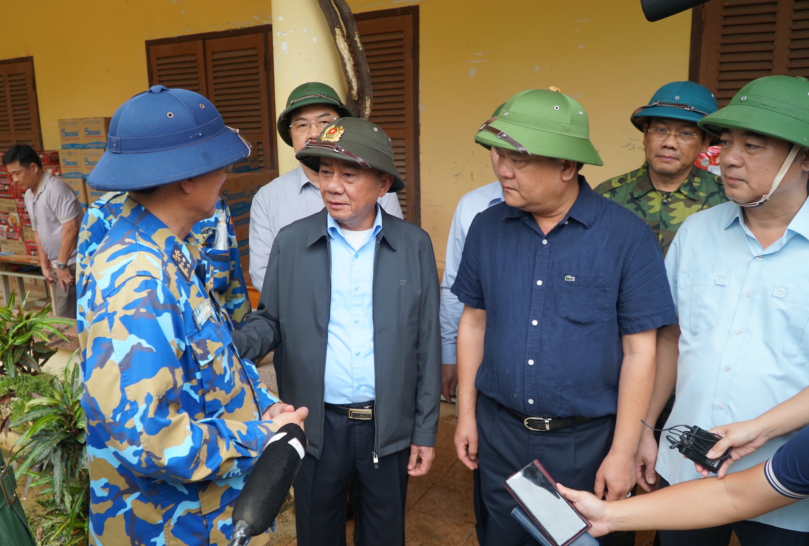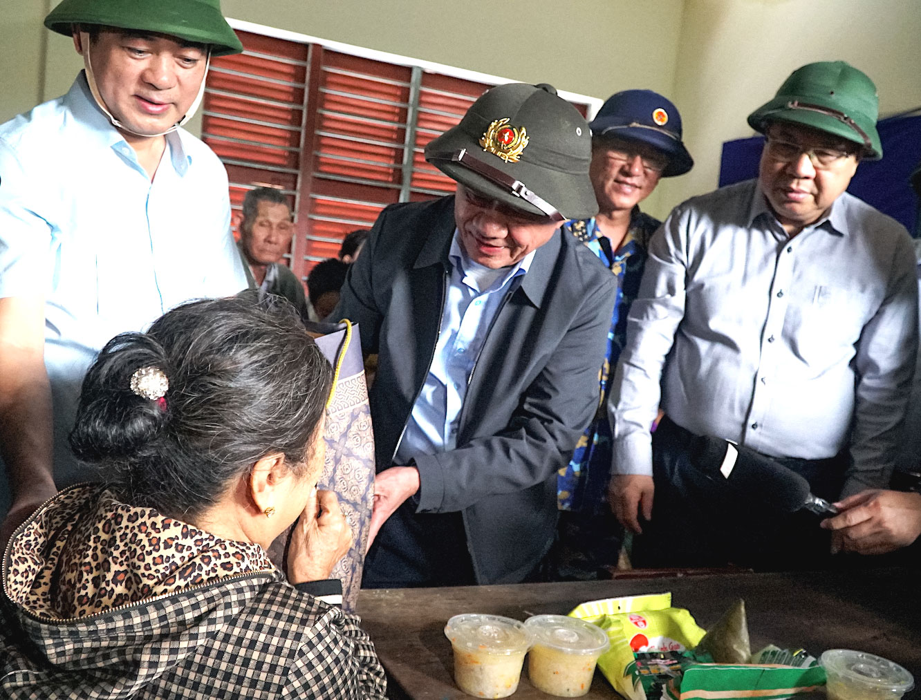 Tại xã Diên Điền, đồng chí Thường trực Ban Bí thư Trần Cẩm Tú đã đến thăm hỏi, động viên các gia đình đang ở nơi di dân tạm thời chống lũ và chia sẻ sâu sắc với bà con trước những thiệt hại, mất mát do mưa lũ gây ra.