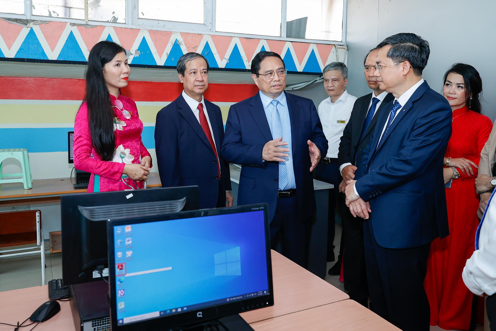 Thủ tướng thăm một số phòng học chức năng và cơ sở vật chất của Trường Phổ thông cơ sở Nguyễn Đình Chiểu - Ảnh: VGP/Nhật Bắc