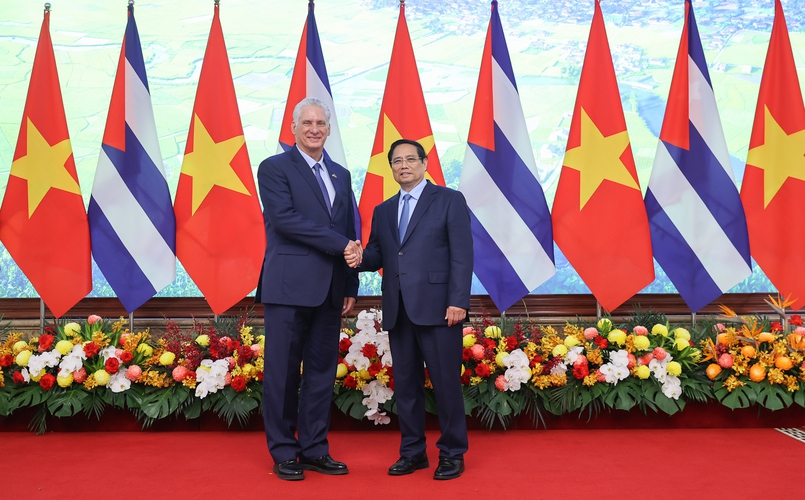 Thủ tướng Chính phủ Phạm Minh Chính nhiệt liệt chào mừng Bí thư Thứ nhất, Chủ tịch nước Cuba Miguel Diaz Canel thăm cấp Nhà nước tới Việt Nam và tham dự các hoạt động kỷ niệm 80 năm Cách mạng tháng Tám thành công và Quốc khánh nước Cộng hòa xã hội chủ nghĩa Việt Nam đúng vào dịp kỷ niệm 65 năm thiết lập quan hệ ngoại giao Việt Nam - Cuba, thể hiện tình cảm anh em, đồng chí và sự đoàn kết ủng hộ quý báu của Đảng, Nhà nước và nhân dân Cuba dành cho nhân dân Việt Nam; khẳng định Việt Nam luôn trân trọng và gìn giữ mối quan hệ hữu nghị đặc biệt Việt Nam - Cuba, một biểu tượng mẫu mực trong quan hệ quốc tế, được nhiều thế hệ lãnh đạo Đảng, Nhà nước và nhân dân hai nước dày công vun đắp; đồng thời bày tỏ lòng biết ơn sâu sắc đối với sự ủng hộ của Cuba đã dành cho Việt Nam trong những năm tháng đấu tranh giải phóng dân tộc cũng như trong sự nghiệp xây dựng và bảo vệ Tổ quốc của Việt Nam ngày nay.