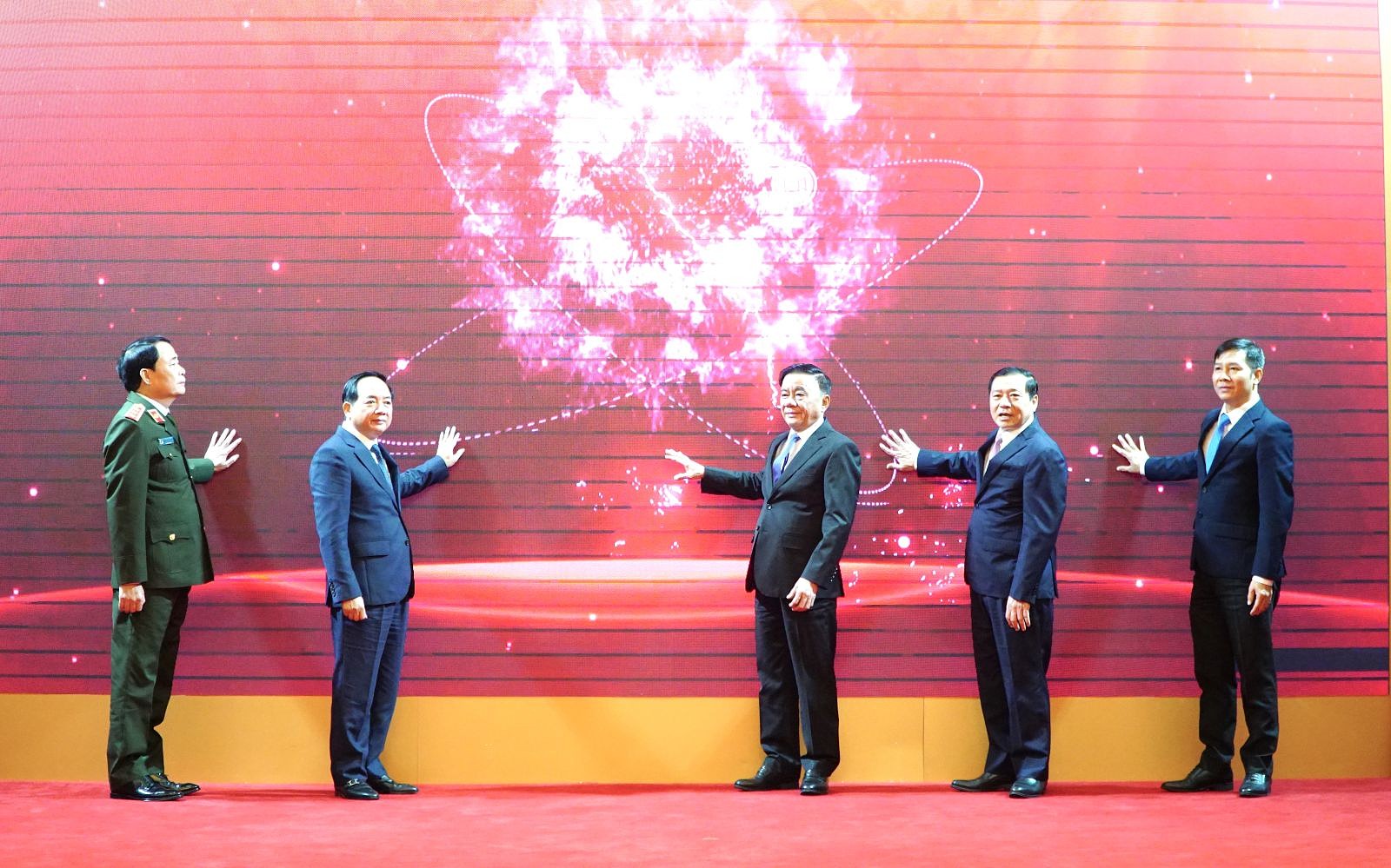 Đồng chí Thường trực Ban Bí thư Trần Cẩm Tú và các đại biểu thực hiện nghi thức bấm nút ra mắt ứng dụng của ngành Tuyên giáo và Dân vận.