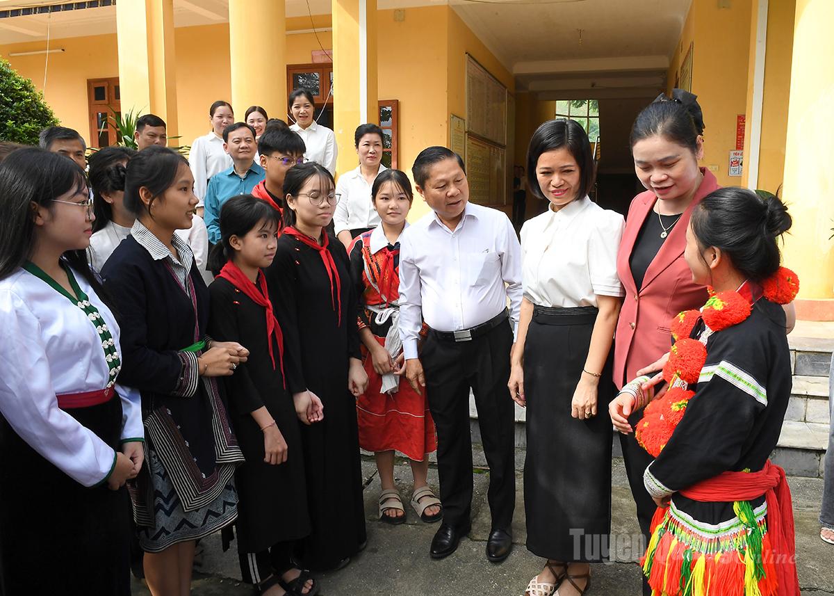 Thứ trưởng Bộ Giáo dục và Đào tạo Lê Tấn Dũng trò chuyện, động viên học sinh trường Phổ thông Dân tộc nội trú THCS và THPT Chiêm Hóa.