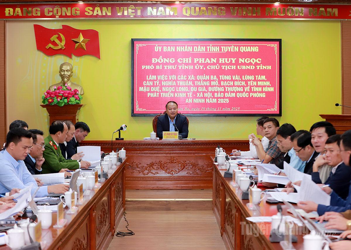 Chủ tịch UBND tỉnh Phan Huy Ngọc làm việc với Thường trực Đảng ủy các xã.