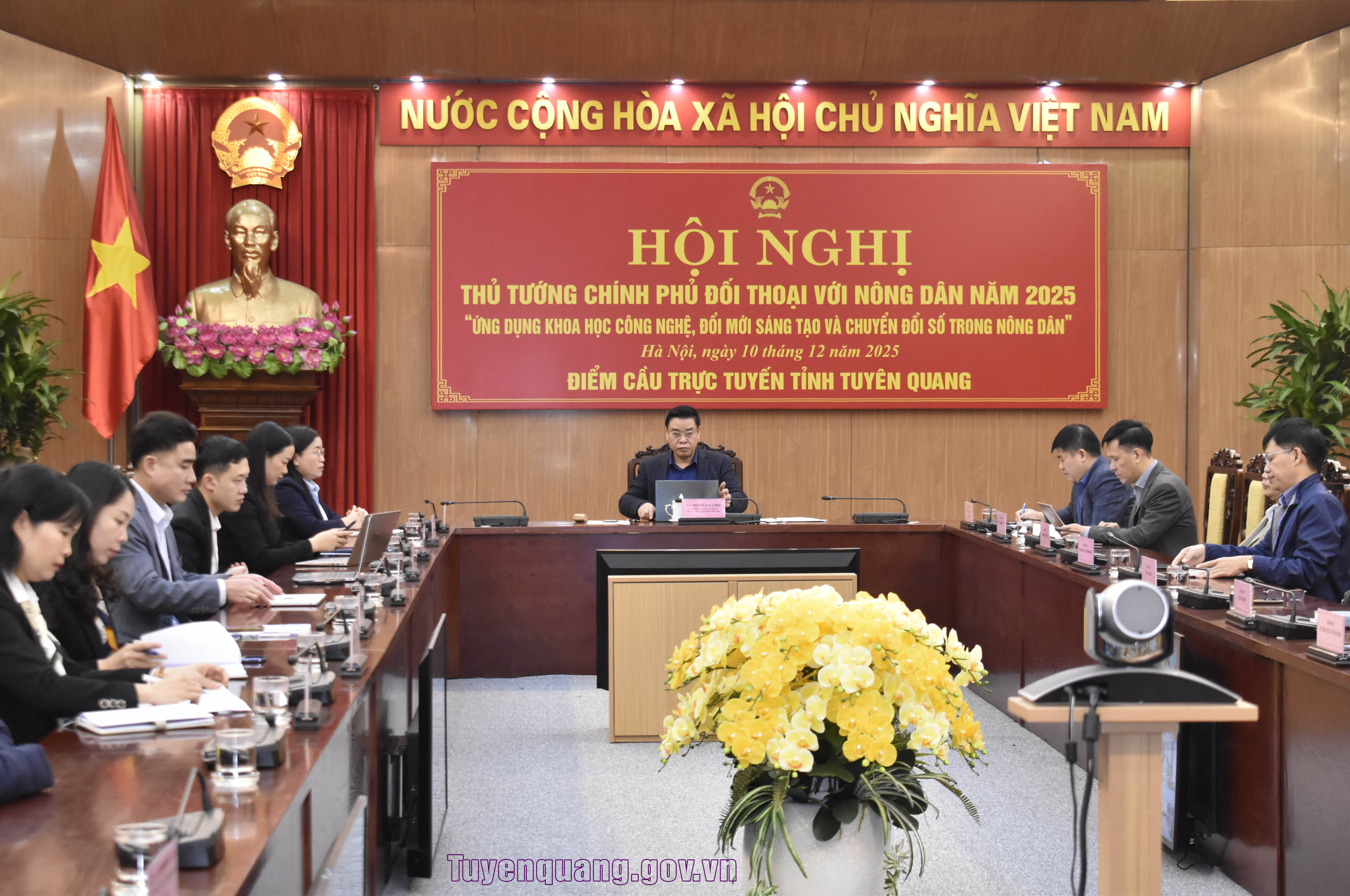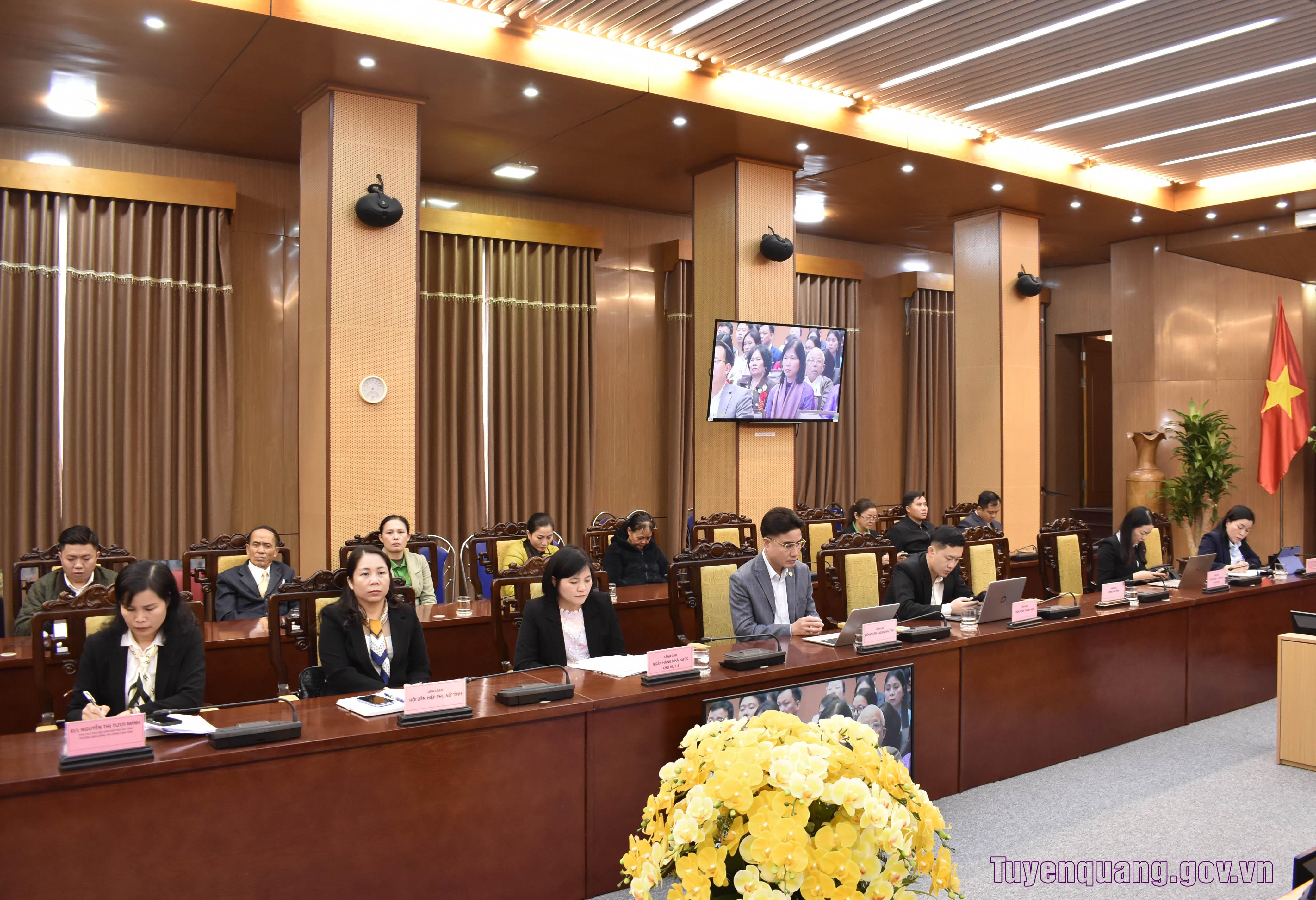Đồng chí Hoàng Gia Long, Ủy viên Ban Thường vụ Tỉnh ủy, Phó Chủ tịch UBND tỉnh dự và chủ trì hội nghị tại điểm cầu Tuyên Quang.