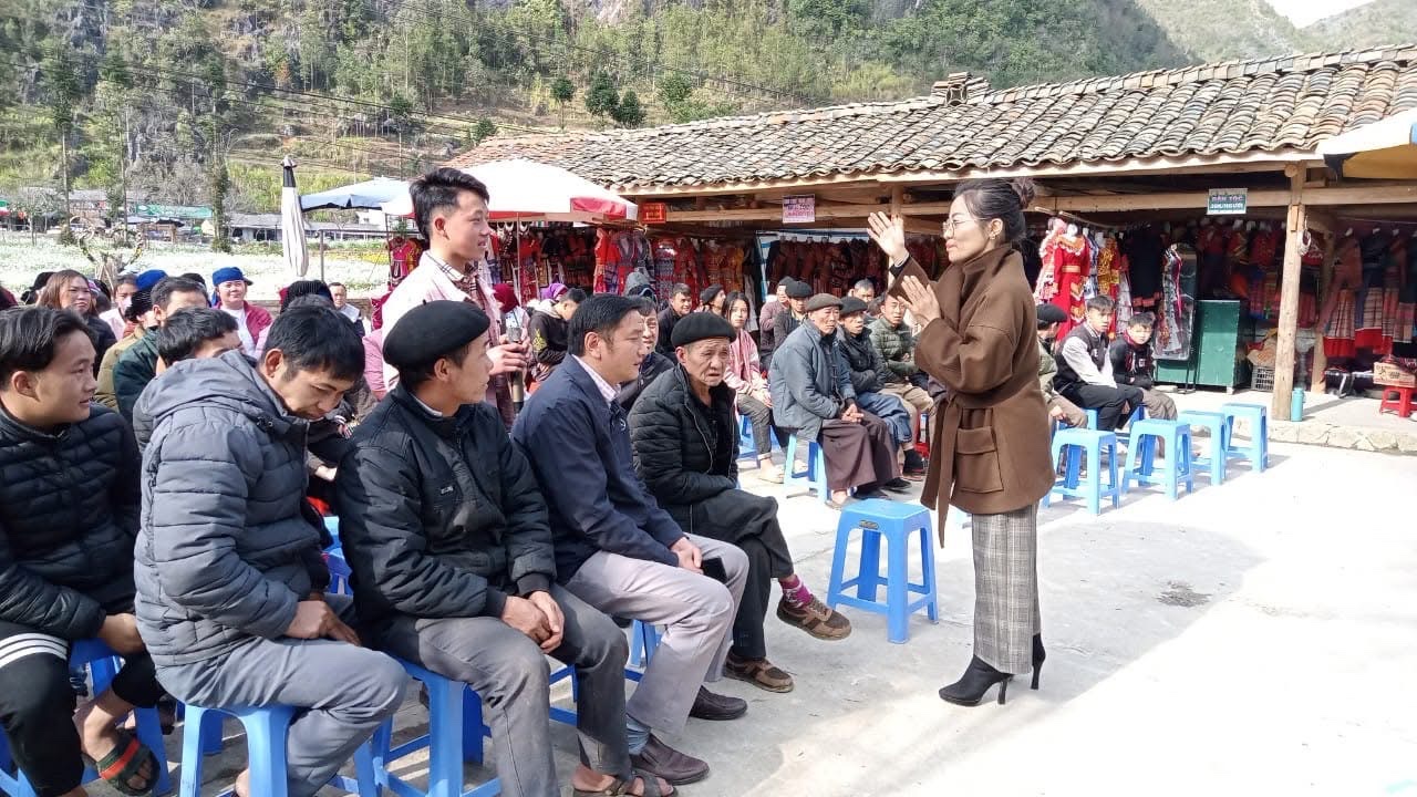 Lãnh đạo Trung tâm xúc tiến du lịch tỉnh tập huấn, hướng dẫn người dân cách làm du lịch hiệu quả.