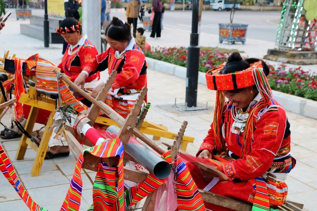 Đến đây, du khách còn được chiêm ngưỡng tài dệt trang phục của phụ nữ Pà Thẻn.