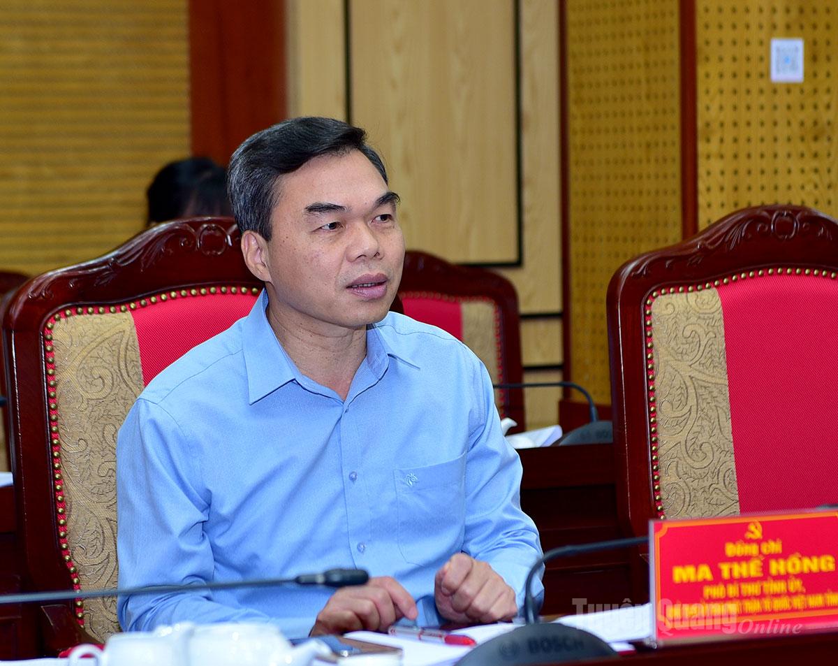 Đồng chí Phó Bí thư Tỉnh ủy, Chủ tịch Ủy ban MTTQ tỉnh Ma Thế Hồng phát biểu ý kiến tại cuộc họp.
