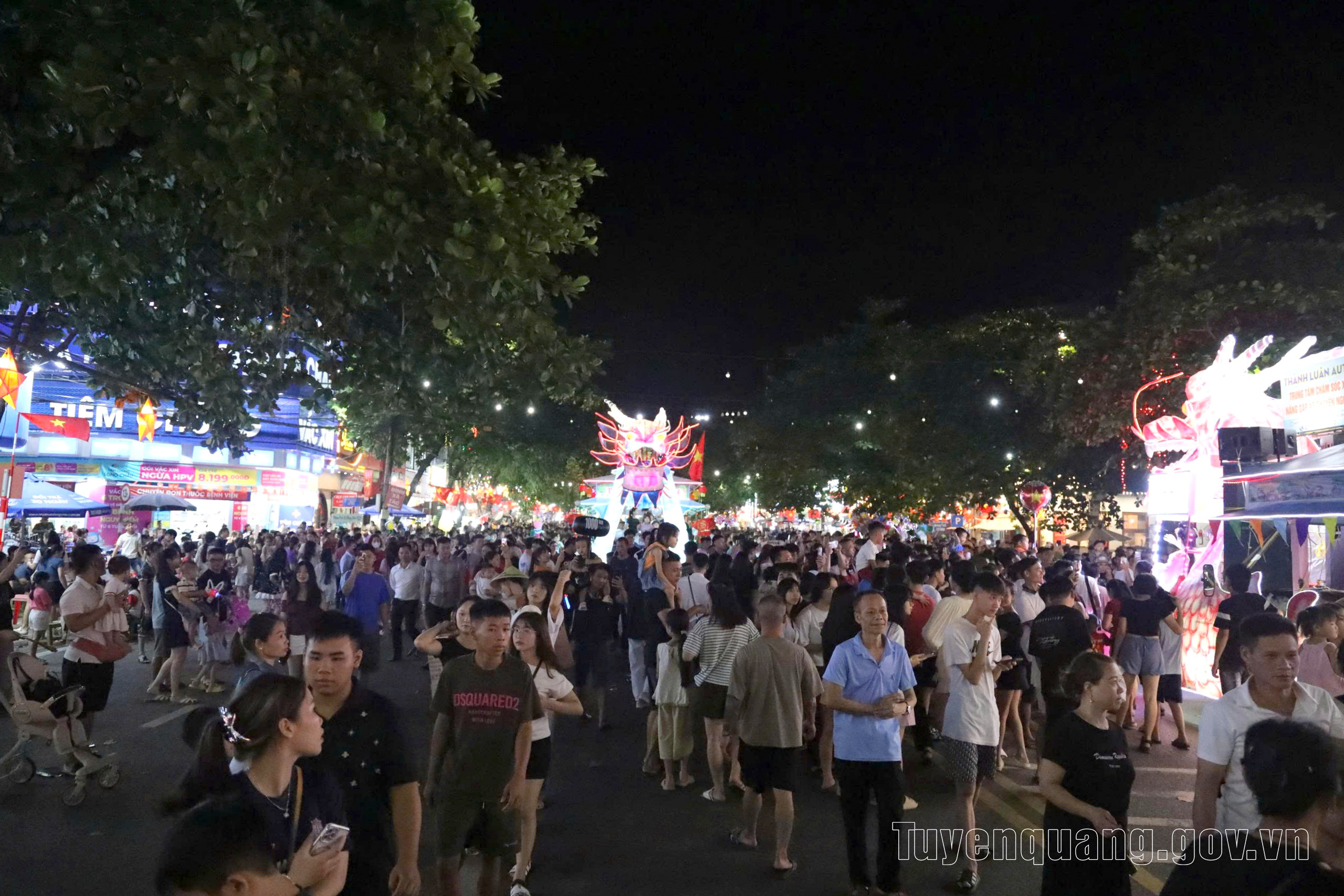 Rất đông khu khách đổ về tham gia diễu mô hình đèn Trung thu tại Tuyên Quang.