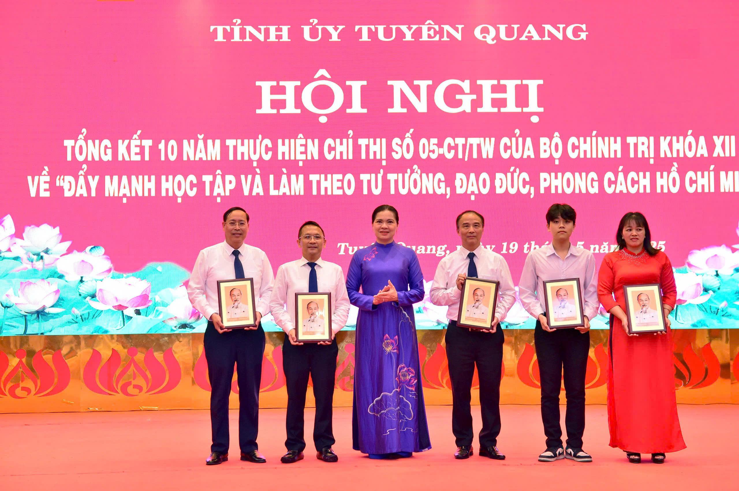 Chú trọng tuyên truyền và nhân rộng các gương người tốt, việc tốt, gương điển hình học tập và làm theo tư tưởng, đạo đức, phong cách Hồ Chí Minh; mô hình hay, cách làm sáng tạo, hiệu quả. Các cơ quan, đơn vị tích cực hưởng ứng và tham gia sáng tác, quảng bá các tác phẩm văn học, nghệ thuật, báo chí về chủ đề “Học tập và làm theo tấm gương đạo đức Hồ Chí Minh” giai đoạn 2016-2025 với hơn 300 tác phẩm; có 01 tập thể và 02 tác giả đạt giải Trung ương; 36 tác phẩm văn học, nghệ thuật, báo chí  được xét chọn trao giải thưởng tại tỉnh. Năm 2020, Ban Tuyên giáo Tỉnh ủy đã tổ chức lễ trao giải báo chí; giải sáng tác, quảng bá sản phẩm văn học, nghệ thuật, báo chí về chủ đề “Học tập và làm theo tư tưởng, đạo đức, phong cách Hồ Chí Minh”; giải báo chí tuyên truyền đưa Nghị quyết của Đảng vào cuộc sống, trong đó, đã trao 04 giải A, 09 giải B cho các tập thể và cá nhân đạt giải sáng tác, quảng bá tác phẩm văn học, nghệ thuật, báo chí về chủ đề “Học tập và làm theo tư tưởng, đạo đức, phong cách Hồ Chí Minh”; năm 2023 đạt 01 giải B Giải thưởng sáng tác, quảng bá tác phẩm văn học nghệ thuật và báo chí về chủ đề “Học tập và làm theo tư tưởng, đạo đức, phong cách Hồ Chí Minh giai đoạn 2021-2023” do Ban Tuyên giáo Trung ương tổ chức; giai đoạn 2021-2025, Ban Tuyên giáo Tỉnh ủy trao 01 giải thưởng Quảng bá, 02 giải A, 05 giải B, 08 giải C và 03 giải Khuyến khích; năm 2025, Ban Tuyên giáo và Dân vận Tỉnh ủy, Báo Tuyên Quang là 2 trong số 46 đơn vị xuất sắc toàn quốc trong hoạt động quảng bá tác phẩm văn học, nghệ thuật, báo chí về chủ đề “Học tập và làm theo tư tưởng, đạo đức, phong cách Hồ Chí Minh” đợt 2, giai đoạn 2021-2025 được Ban Tuyên giáo và Dân vận Trung ương tặng Bằng khen, 1 cá nhân đưpcj trao giải C. Trong 10 năm qua, có 8.242 lượt tập thể, cá nhân điển hình học tập và làm theo tư tưởng, đạo đức, phong cách Hồ Chí Minh được các cấp biểu dương, khen thưởng.
