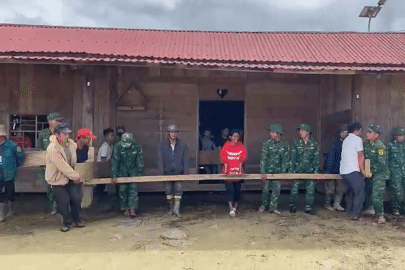 Trước tình hình này, sáng 30/9, Đồn Biên phòng Ga Ry đã cử 20 cán bộ, chiến sĩ cùng lực lượng chức năng địa phương và bà con, hợp sức khiêng nguyên căn 6 ngôi nhà đến vị trí an toàn, thay vì tháo dỡ từng phần.