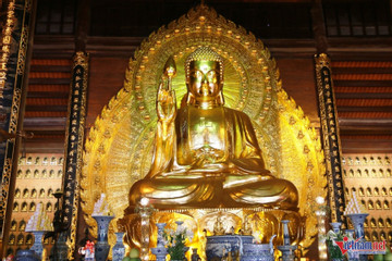Bức tượng Phật bằng đồng dát vàng nặng 100 tấn, lớn nhất châu Á