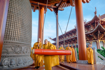 Chuông nguyện cầu quốc thái dân an từ chùa có tượng Phật ngọc lớn nhất thế giới