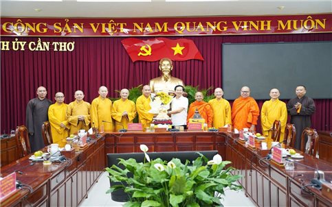 Đoàn chư tôn đức Trung ương Giáo hội Phật giáo Việt Nam thăm, chúc mừng lãnh đạo TP. Cần Thơ sau sáp nhập