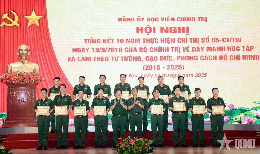 Lãnh đạo Học viện Chính trị trao thưởng tặng các tập thể, cá nhân có thành tích xuất sắc trong thực hiện Chỉ thị 05 giai đoạn 2016-2025. Ảnh: qdnd.vn