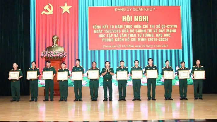 Ngày 29/5, Đảng ủy, Bộ Tư lệnh Quân khu 7 tổ chức Hội nghị Tổng kết 10 năm thực hiện Chỉ thị số 05-CT/TW ngày 15/5/2016 của Bộ Chính trị về đẩy mạnh học tập và làm theo tư tưởng, đạo đức, phong cách Hồ Chí Minh, giai đoạn 2016 - 2025.